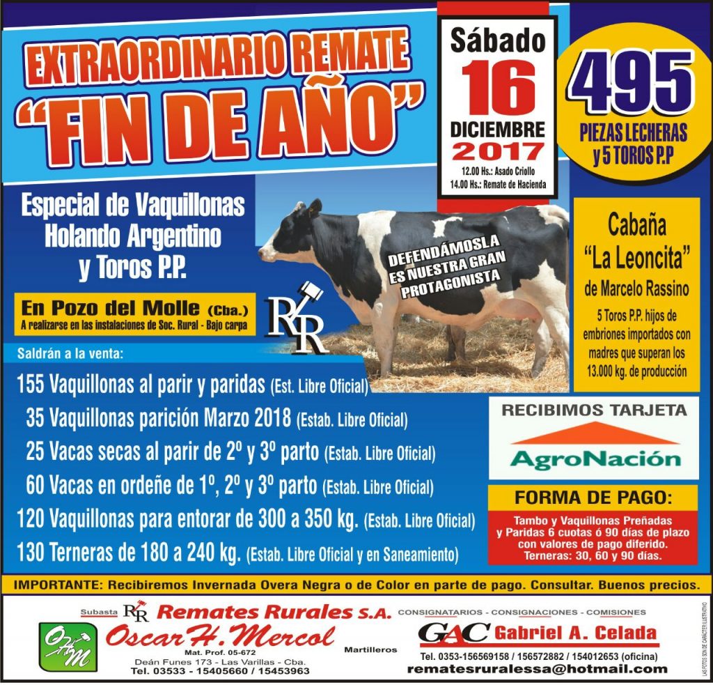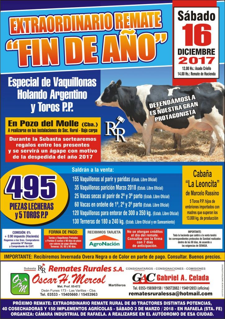 Especial de Vaquillonas Holando Argentino y Toros P.P.